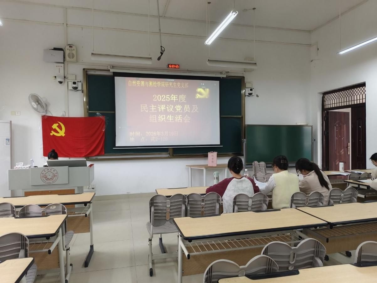 研究生党支部在武2-120教室召开了2025年度民主评议党员及组织生活会。本次会议由党支部书记冯静同志主持,支部51名党员同志参会。